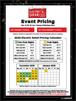 You’ll also enjoy photos with our larger-than-life illuminated inflatable animals located throughout the Zoo and a drone show! Electric Safari was voted #2 Best Zoo Lights in the U.S. 2025 by USA TODAY 10Best Readers’ Choice.