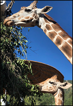 “Our giraffe train to have their hooves trimmed and cared for, their blood drawn, their eyes examined, and of course they train to shift in and out of different areas of their yards and barn,” said Bredahl. “Khalid, our breeding bull, even trains to participate in giraffe ‘yoga,’ which helps him stretch and stay limber. Our giraffe training programs help us take great care of our herd. It also allows us to share what we learn and participate in research studies that benefit giraffe in human care and in the wild, around the world.”